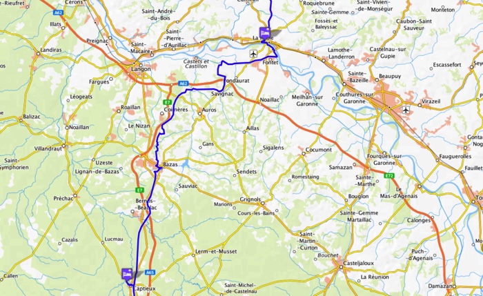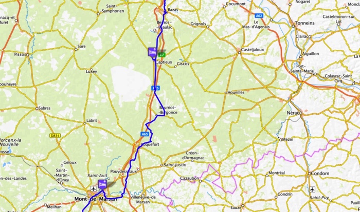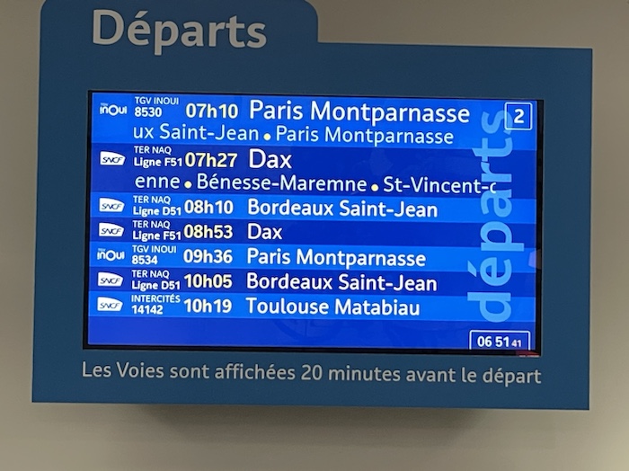 Hier verlassen wir das Meer. Nächste Halte sind Dax und Bordeaux, dann Paris um 11.52 Uhr.