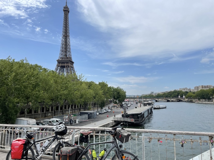 13.07 Uhr – Auf der Fußgängerbrücke über die Seine.