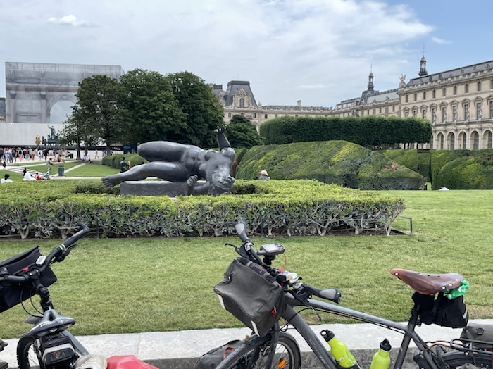 Im Jardin-des-Tuileries. Der Verkehr auf dem Quai-des-Tuileries ist die Hölle. Radfahren auf einer Busspur auf der auch Taxis fahren und sehr eng überholen oder drängeln. Da habe ich tatsächlich meine Gelassenheit verloren.