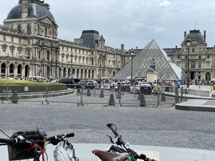 13.50 Uhr – Wir haben die Räder durch den Park geschoben und stehen jetzt am Louvre. Vor uns die berühmte Glaspyramide.