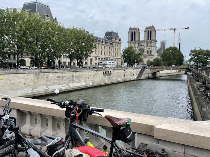 13.58 Uhr – Notre-Dame. Näher möchte ich wegen des Umwegs nicht heran. Der sehr anstrengende Verkehr und die näherkommende Abfahrtzeit machen mich nun doch ziemlich nervös.