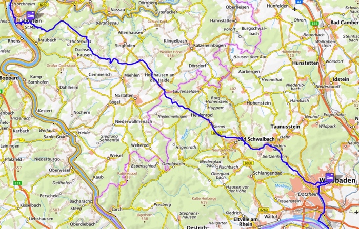 Hier die Karte mit meiner heutigen Taunus-Etappe.
