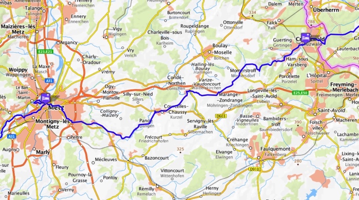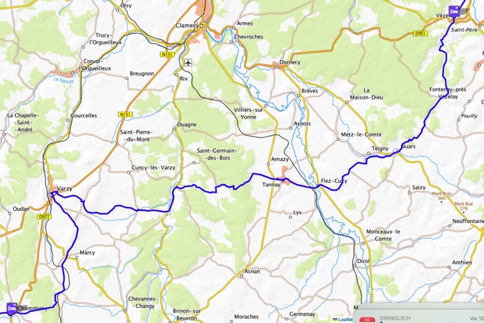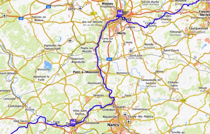 Mein Weg nach Vézelay führt von Bonn aus erst nach Wiesbaden, da Martina wieder mit von der Partie sein wird. Von Wiesbaden überbrücken wir die Strecke Mainz – Saarbrücken mit dem Zug und erreichen in Metz den Jakobsweg. Über Toul und Auxerre radeln wir nach Vézelay.