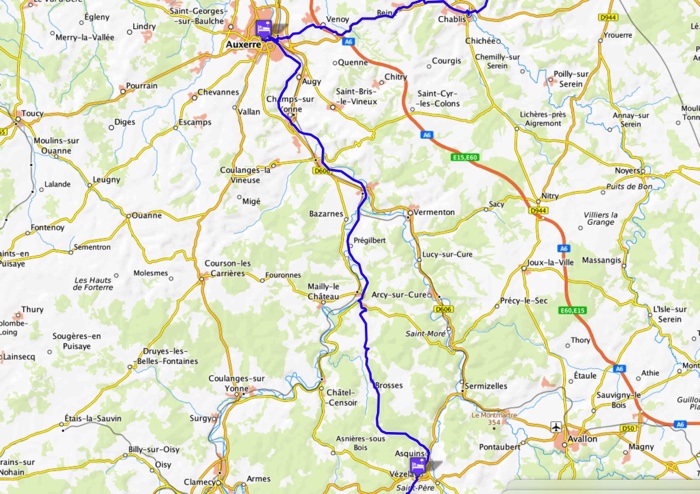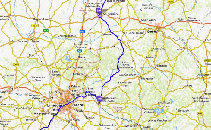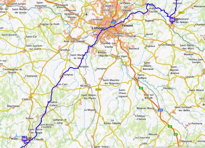 In Vézelay beginnt eine der vier Hauptpilgerrouten durch Frankreich, die sich in Saint-Jean-Pied-de-Port am Rande der Pyrenäen treffen. Weil es in Vezelay eine berühmte gotische Kathedrale gibt, steht die Stadt schon lange auf meiner Besichtigungsliste. Bourges, Limoges und Périgueux sind bekannte Städte auf der Via Lemovicensis. Sie führt auch durch Saint-Léonard-de-Noblas, den Wirkungsort meines Namenspatrons.