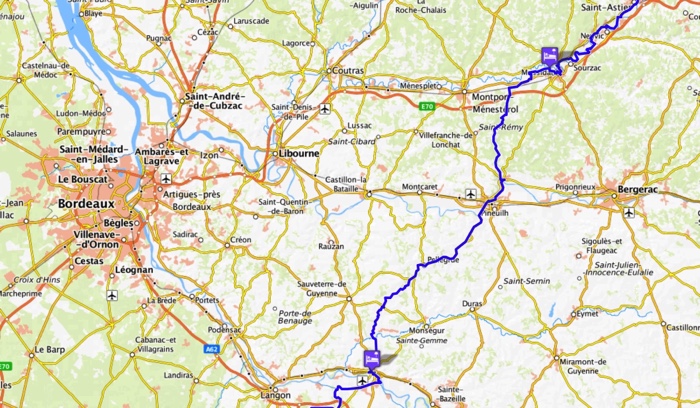 Übrigens bin ich 2015 der nächst südlicheren Route, der Via Podiensis, von Le-Puy-en-Velay bis Moissac gefolgt, siehe 2015 – Bonn – Barcelona.