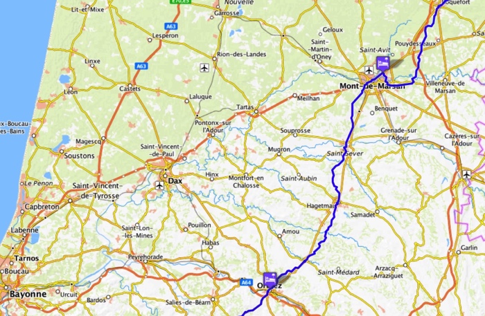 Der Radweg VR56 deckt die Strecke von Vézelay bis Saint-Jean-Pied-de-Port fast vollständig ab.