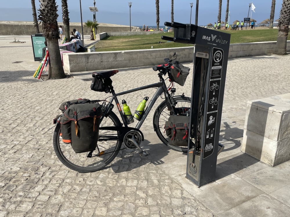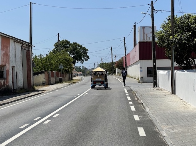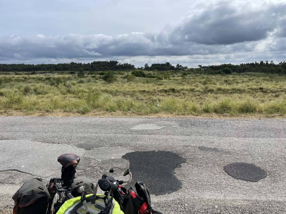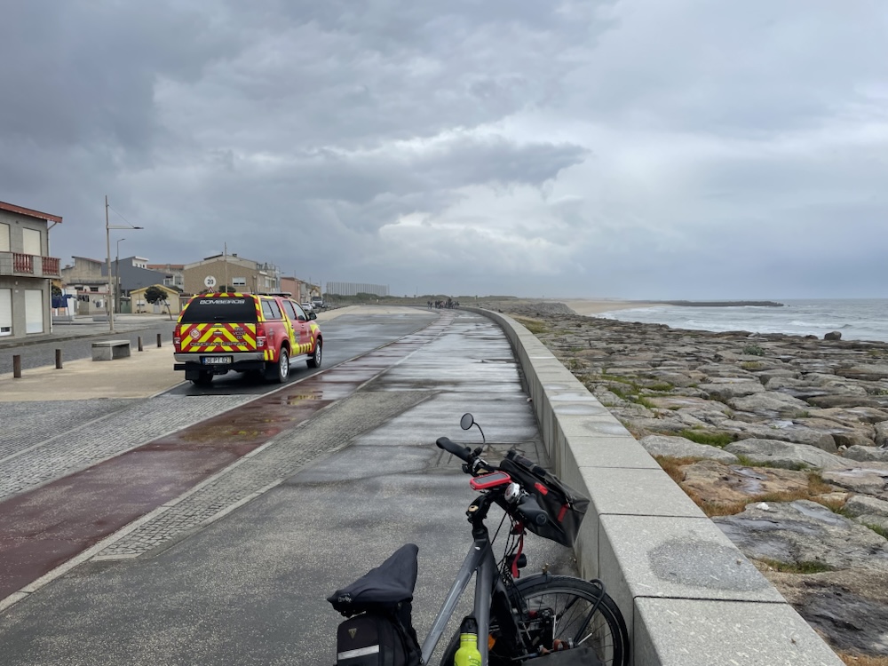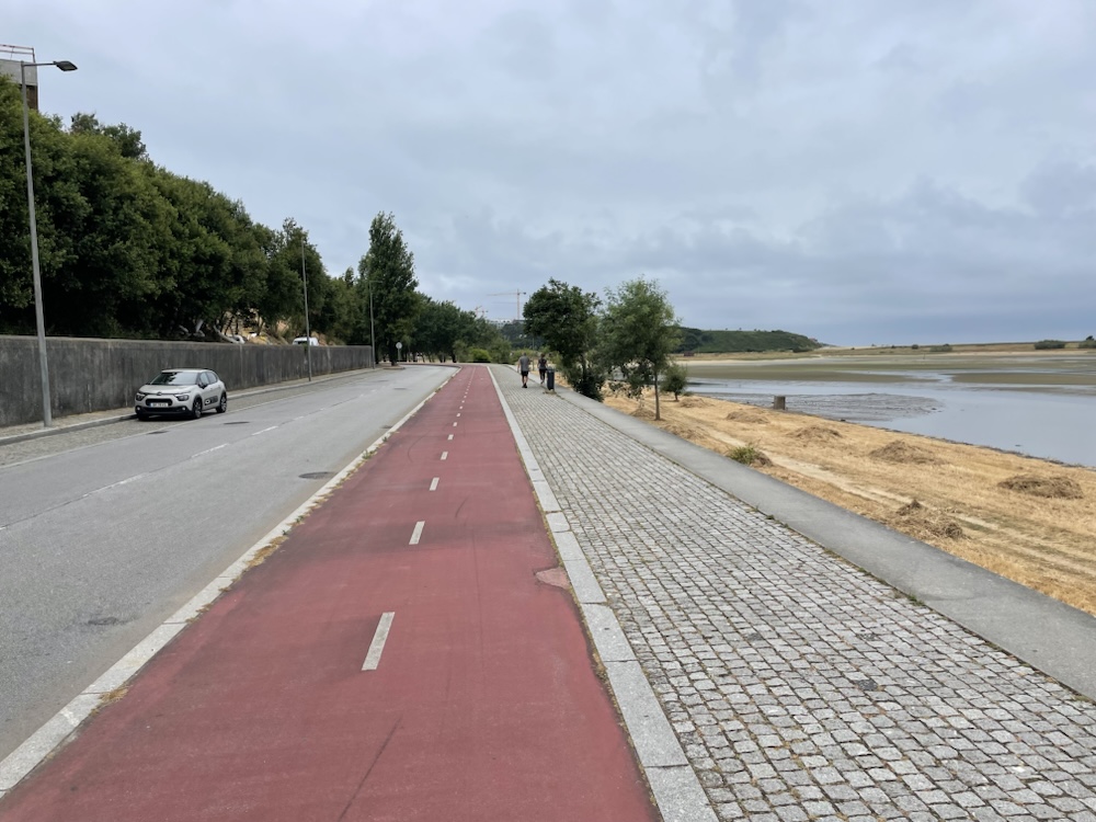 In Portugal fand ich das Verhalten der Autofahrer deutlich aggressiver, mit deutlich höheren Geschwindigkeiten, vor allem auch in den Ortschaften. Es gab sehr wenig Seitenstreifen, also musste ich mitten auf der Fahrbahn fahren, was aber sehr respektiert wurde. Fahrradwege in den Städten sind Flickwerk und oft in sehr schlechtem Zustand. Der Fernradweg läuft sehr viel auf Piste, mit Sand, Wellblech, Schotter, Fels. Nördlich von Porto sind viele Straßen noch gepflastert und schlecht zu fahren.