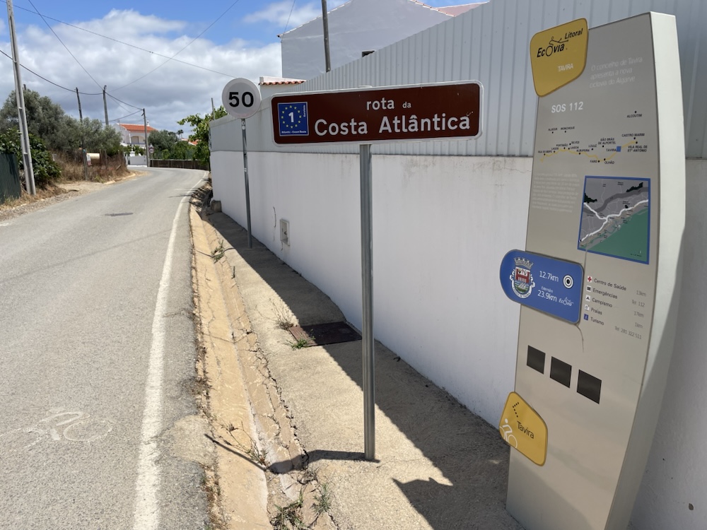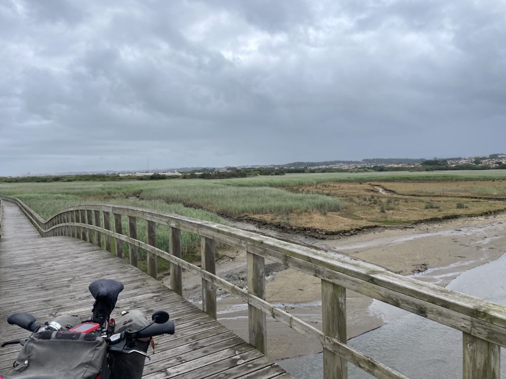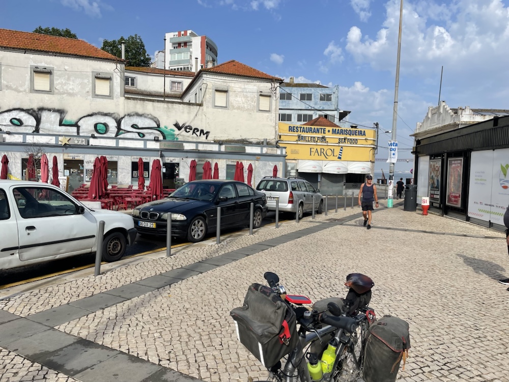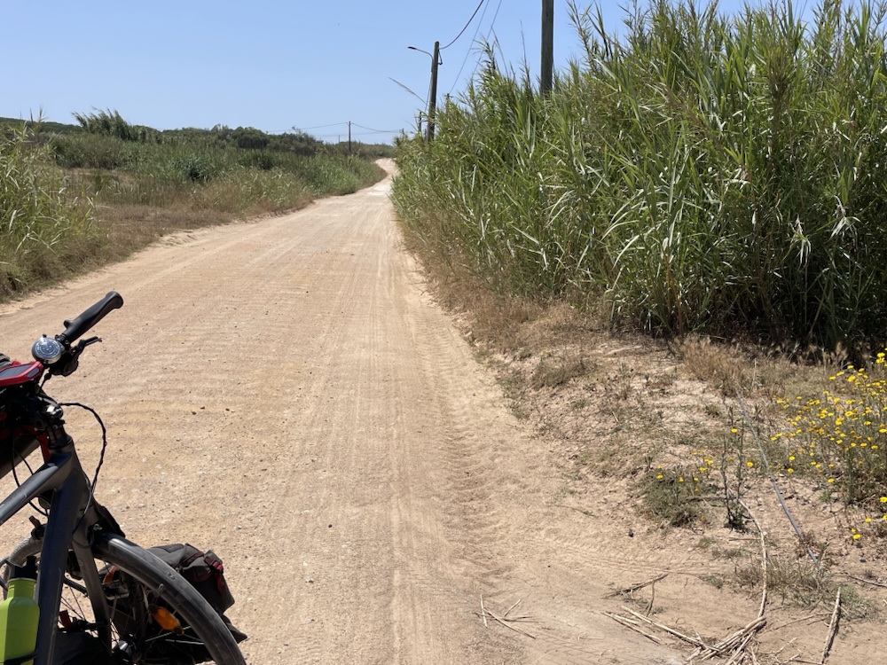 In Portugal fand ich das Verhalten der Autofahrer deutlich aggressiver, mit deutlich höheren Geschwindigkeiten, vor allem auch in den Ortschaften. Es gab sehr wenig Seitenstreifen, also musste ich mitten auf der Fahrbahn fahren, was aber sehr respektiert wurde. Fahrradwege in den Städten sind Flickwerk und oft in sehr schlechtem Zustand. Der Fernradweg läuft sehr viel auf Piste, mit Sand, Wellblech, Schotter, Fels. Nördlich von Porto sind viele Straßen noch gepflastert und schlecht zu fahren.
