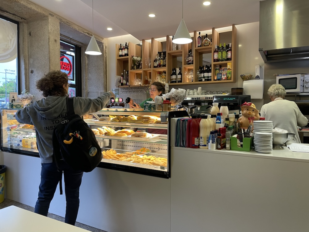 Direkt an der Straßenecke ist schon ein Café, das bereits geöffnet ist.