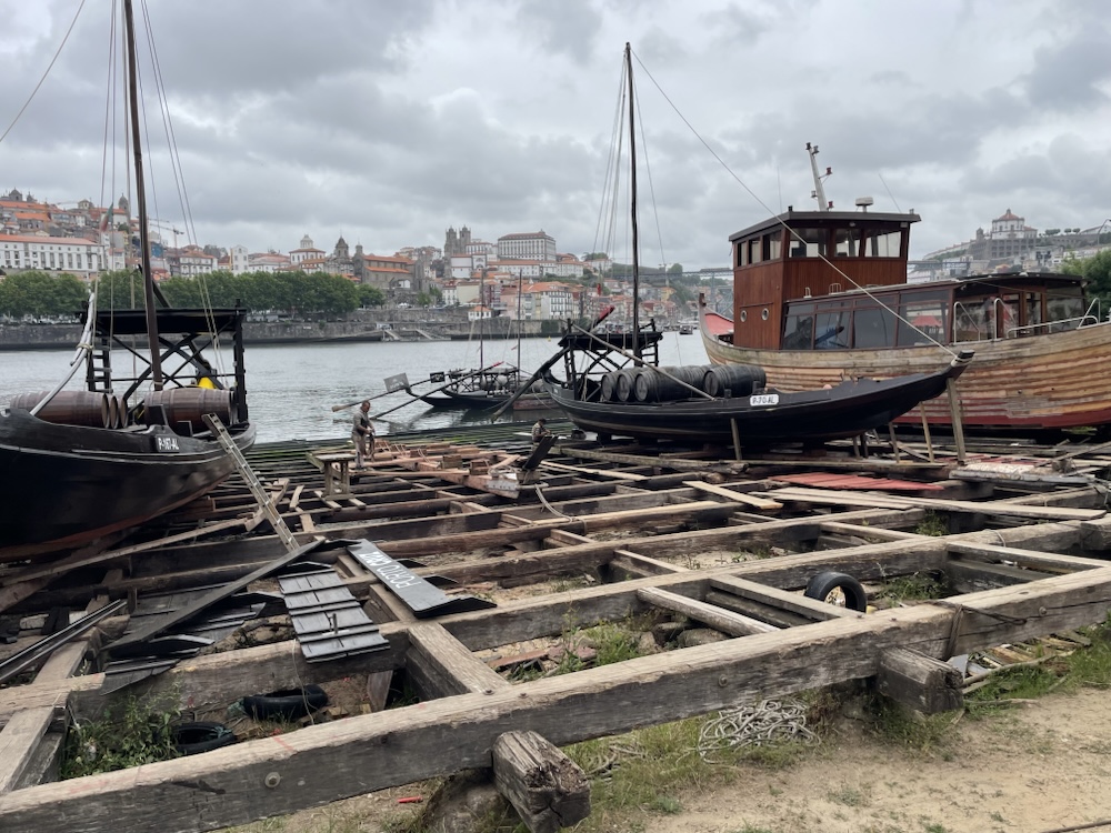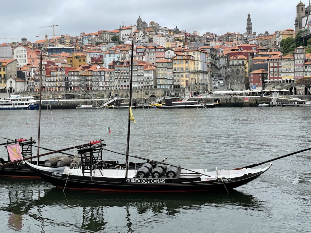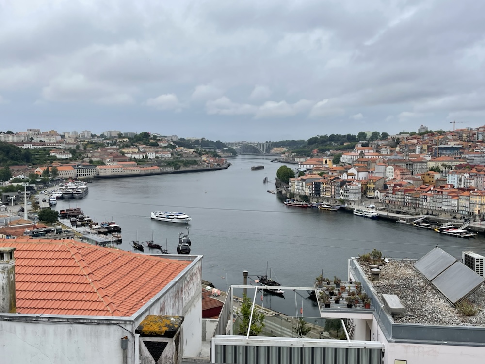 Die Boote mit den Portweinfässern liegen zur Dekoration dort. Hier auf der Seite ist es sehr ruhig, der Blick zur Stadt ist beeindruckend, wenn auch etwas farblos wegen der Wolken.