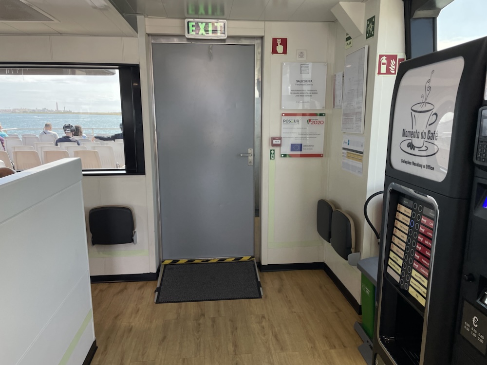16.15 Uhr – Wir dürfen auf die Fähre. Vorher habe ich mir grad noch im Shop eines alten Mütterchens eine Fanta Orange gekauft. Fanta Lemon scheint es in Portugal nicht zu geben.