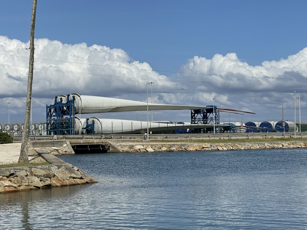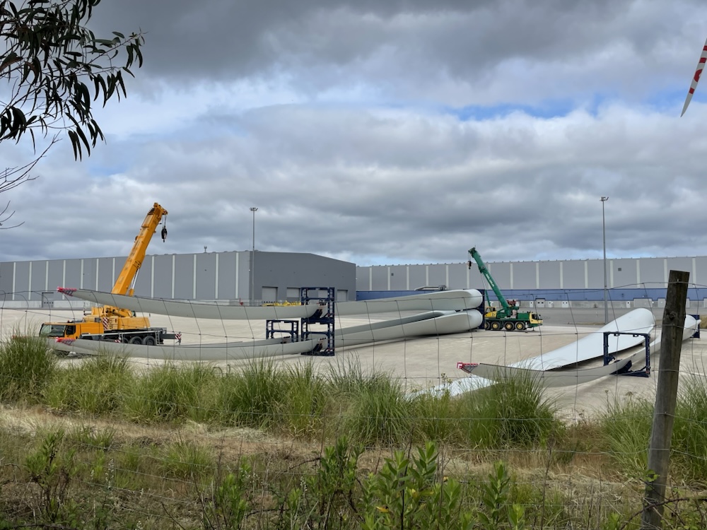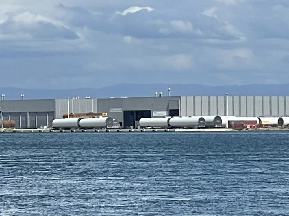 Die Rohrstücke sind tatsächlich Bauteile von Windkraftanlagen, wie diese Rotorblätter auch.