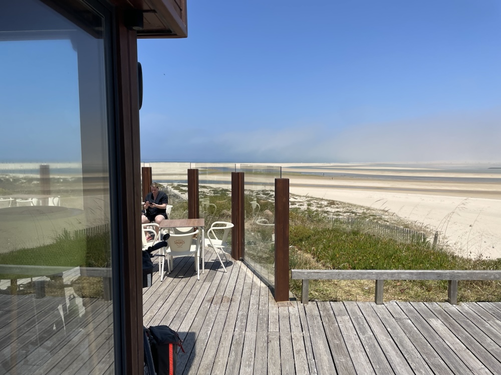 6.21 Uhr – Die Nacht war ein bisschen unruhiger. Der Vollmond schien durch Schleierwolken ins Zimmer. Es ist diesig. Das Tiefdruckgebiet drückt weiter Wolken gegen die Küste. Es könnte auch ein bisschen regnen.