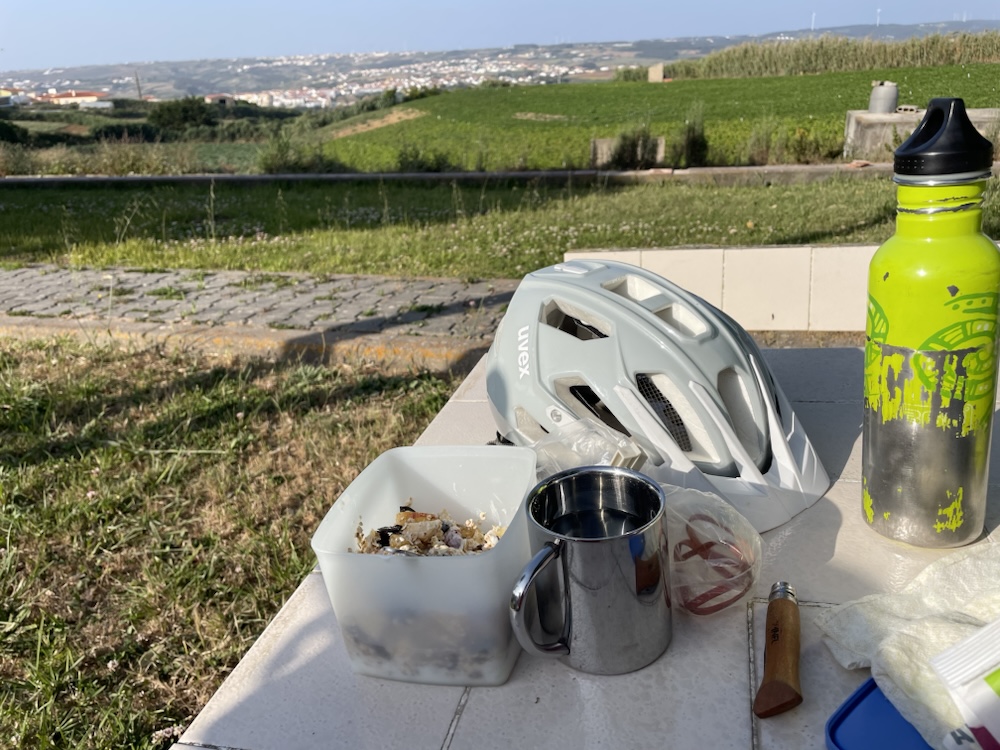 - Müsli mit Haferflocken, Nüssen, Apfel und Joghurt hat sehr gut funktioniert, auch bei Hotels ohne Frühstück. Joghurt hat auch bei über 40° C am nächsten Tag noch geschmeckt.