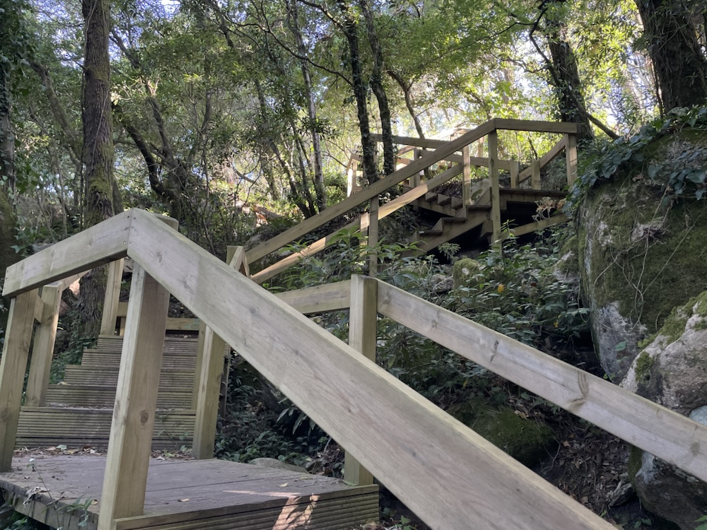Sieht schön aus, ist aber nicht unproblematisch, da immer wieder ganze Bretter fehlen oder welche angebrochen sind und hochstehen.