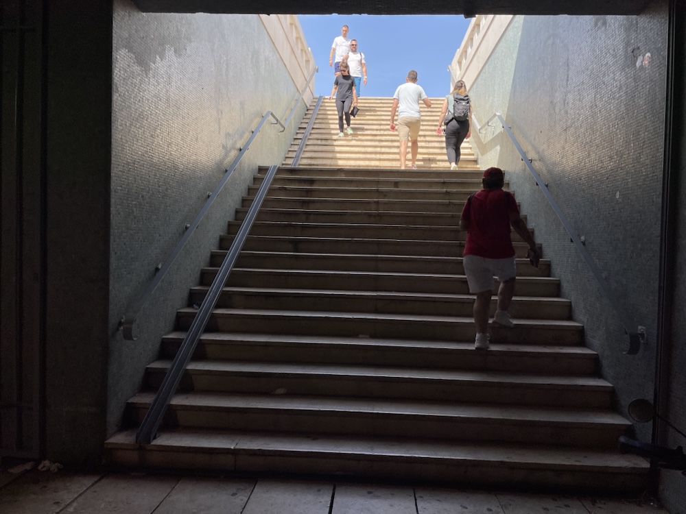 18.41 Uhr – Irgendwann habe ich den Aufzug gefunden. Hier draußen ist es sehr frisch und extrem böig.
