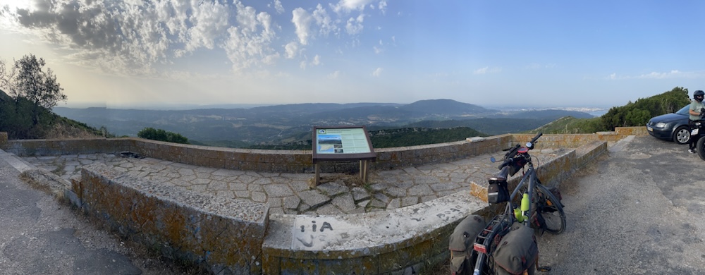 13.52 Uhr – An den näher gekommenen Bergen scheint es richtig zu schütten. Ich fahre gerade schwülwarm, aber trocken, bei 27° C.