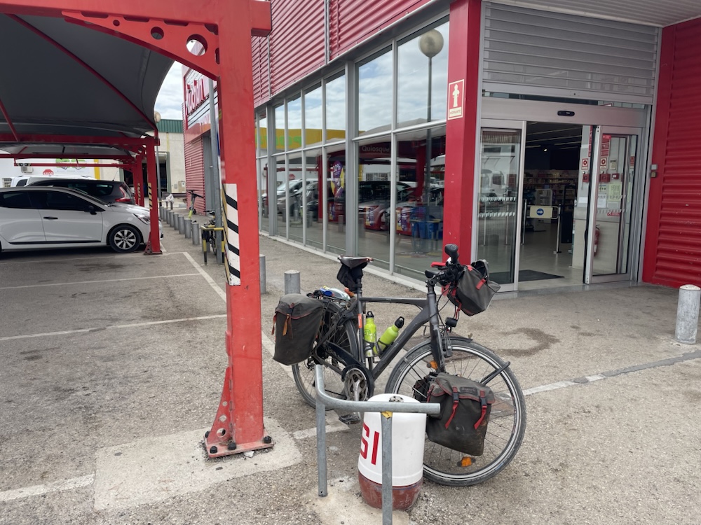 Die Toilette im Busbahnhof ist außer Betrieb, entsprechend riecht es dort in der Ecke furchtbar. Ich bin ein paar hundert Meter zu einem Café geradelt. Dort habe ich auf therapeutischen Rat die Füße hochgelegt und ein Croissant gegessen. So hatte ich eine saubere Toilette.