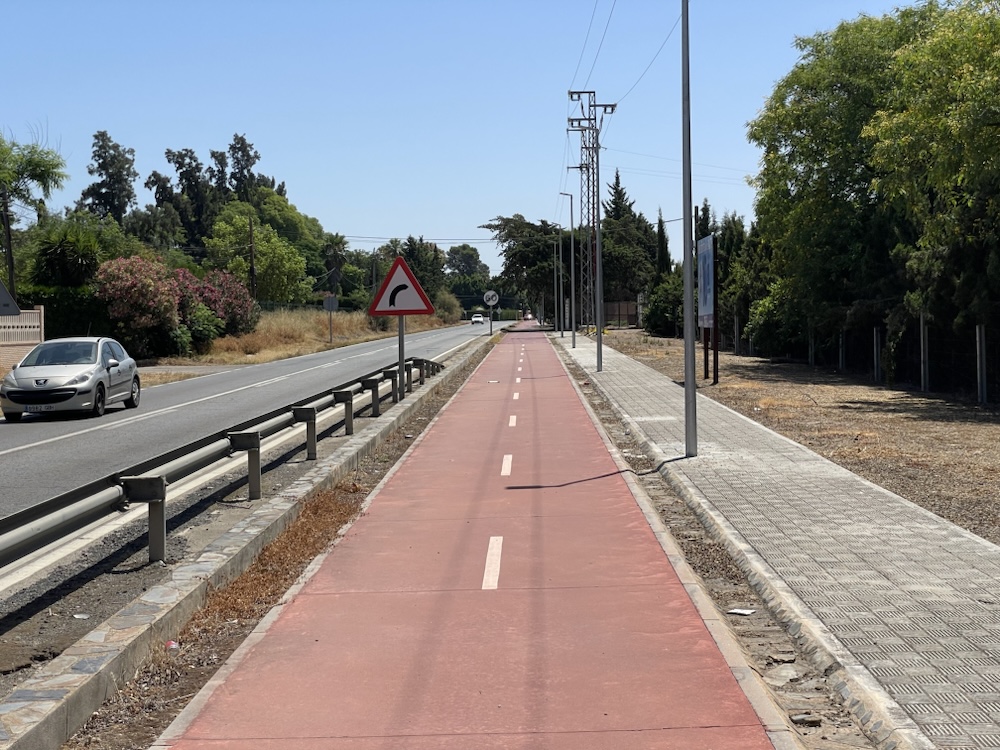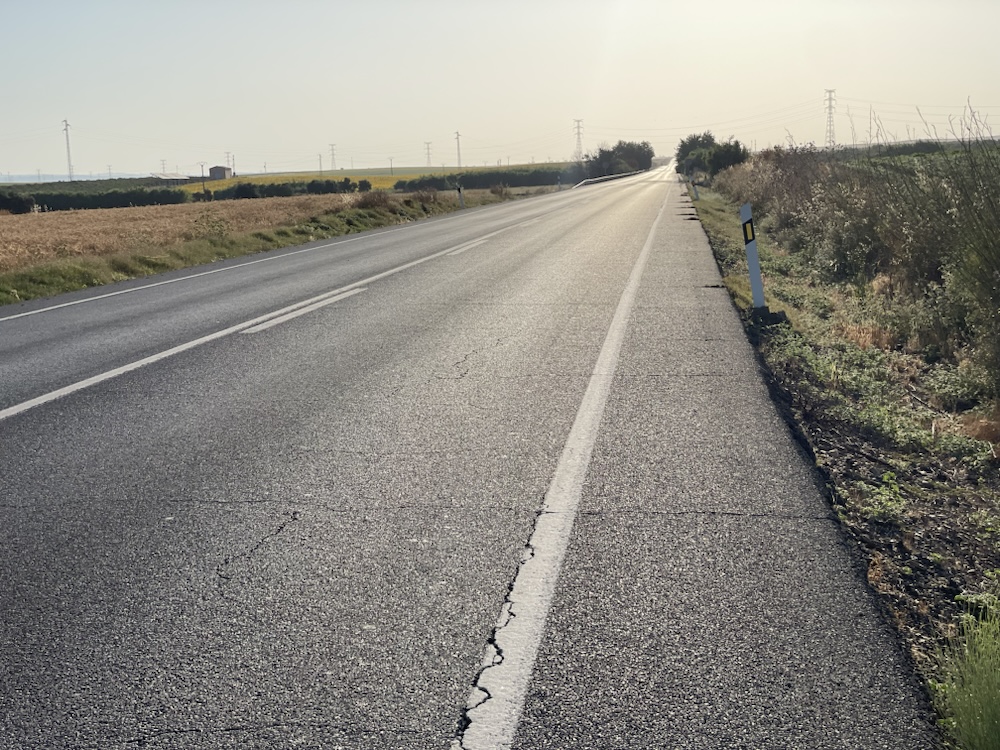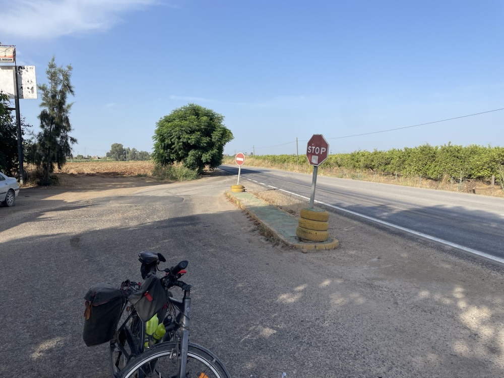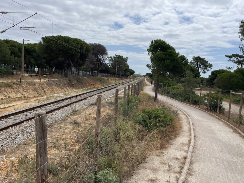 10.24 Uhr – Nach 19,6 km endet hier in Granja der Radweg. Aber es scheint zumindest erstmal auf Teer weiterzugehen.