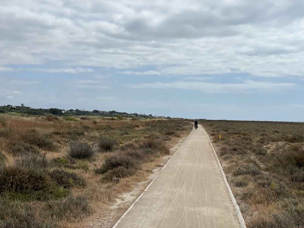 Heute wird es eine lange flache Etappe am Meer entlang. Am Ende fahre ich ein Stück Hauptstraße. Mal sehen, ob die geteert ist.