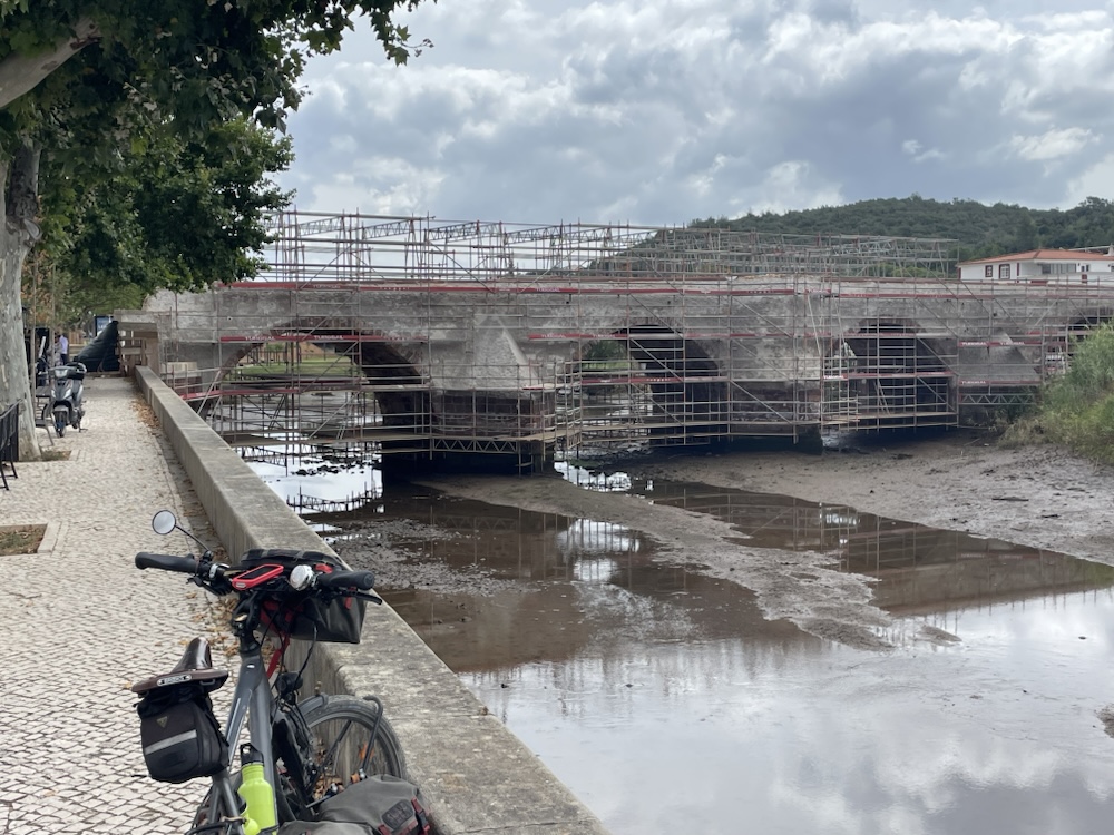 Und eine römische Brücke gibt es hier auch. Nur quasi kein Wasser im Fluss, erst wieder mit der Flut von Portimão kommend.