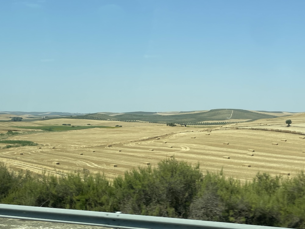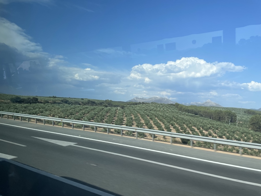 12.53 Uhr – Nach einem Stopp in Montilla sind wir jetzt auf der Autobahn nach Málaga. Schon verrückt. Man kann da einfach mit dem Bus hinfahren.