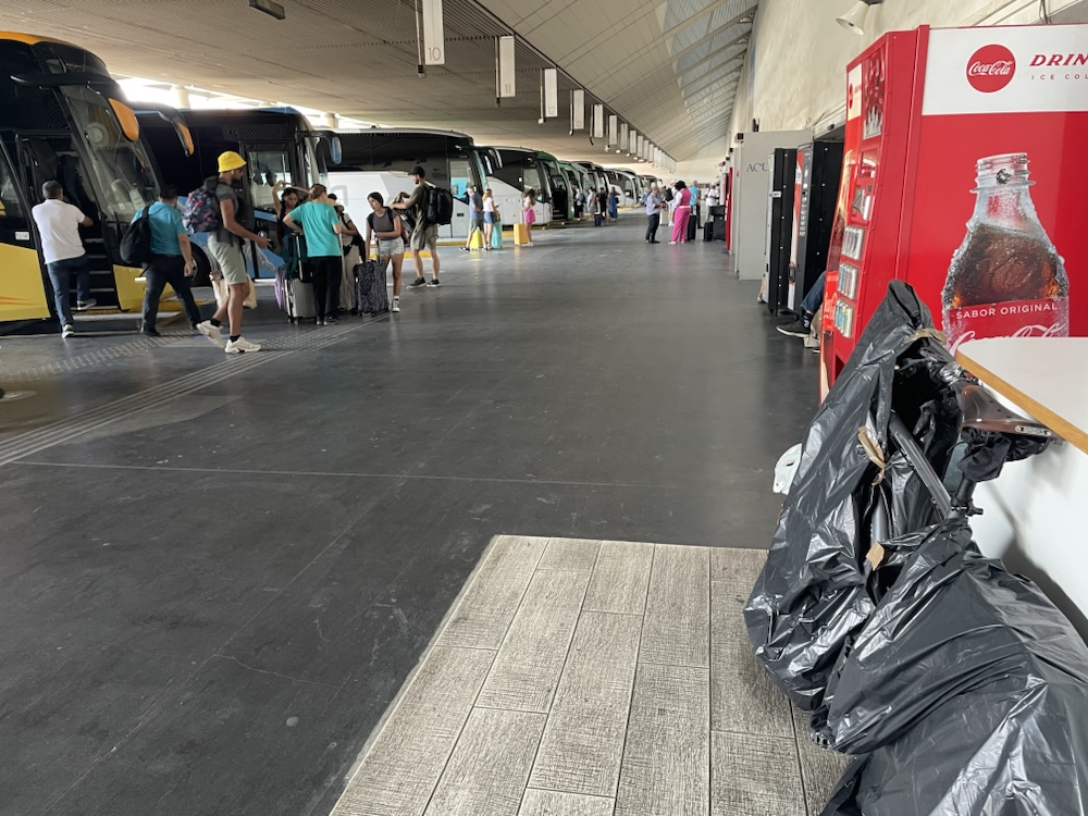 16.14 Uhr – Die Alsa-Mitarbeiterin spricht Englisch. Es gibt eine Toilette im Bus und unterwegs zwei längere Stopps für Cafeteria-Besuche! Das ist doch genial. Und, ich bleibe einfach um Bus sitzen, wenn der von San Sebastián weiter nach Irun fährt. Stornieren und neu kaufen wäre mir zu riskant. Sollte es nicht gehen, radle ich die 20 km wie geplant.