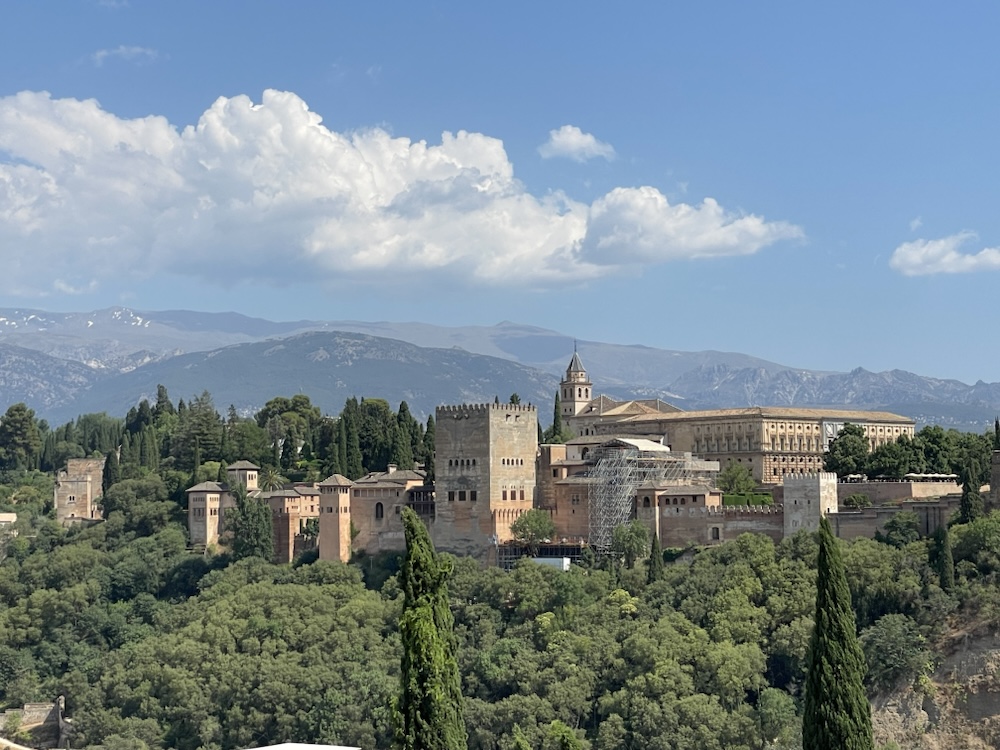 Zwischen den Häusern könnte die Alhambra zu sehen sein.