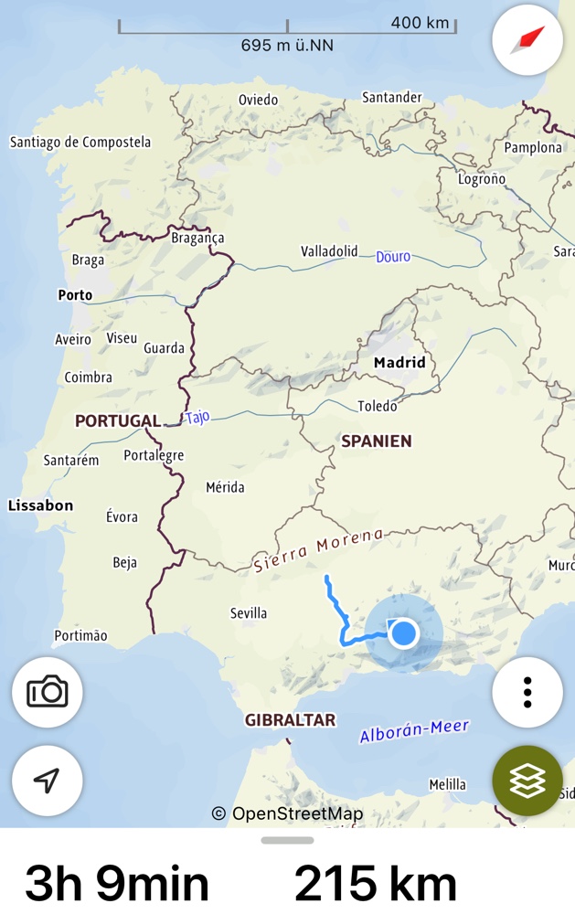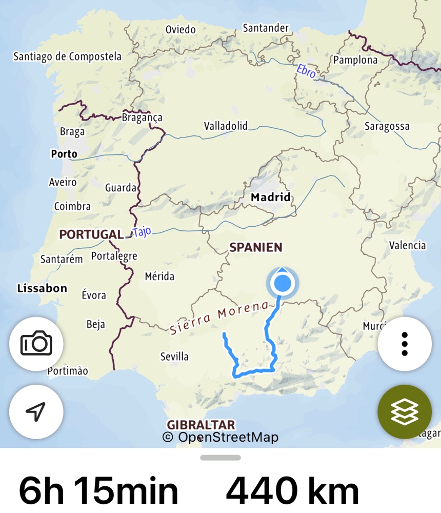 Bisher zurückgelegte Strecke. Jetzt geht es nach Madrid.