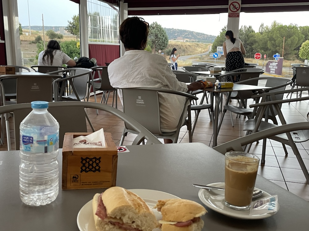 Die Zeit reicht für ein Sandwich und einen Kaffee. Wasser fülle ich am Hahn nach.