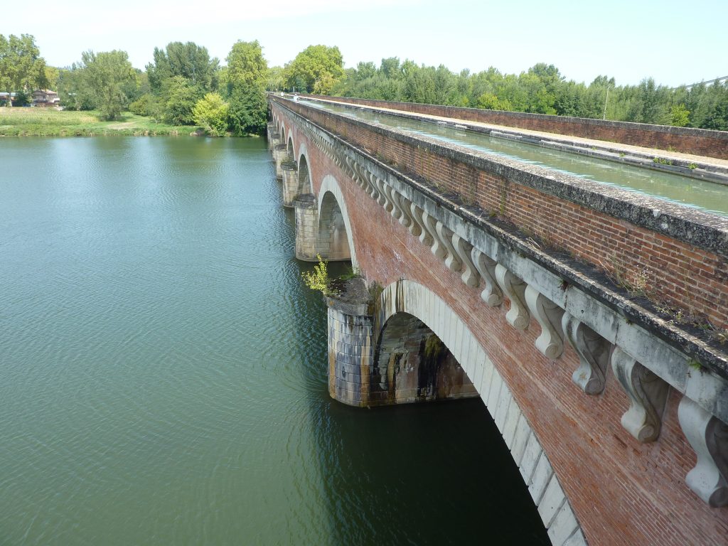 Trotz des Hinweises in der Touristeninformation, dass der Kanalradweg gesperrt sei, bin ich zur berühmten Kanalbrücke am Tarn. Ein englisches Ehepaar kam mir dort entgegen und erklärte mir, dass der Radweg bis auf wenige Stellen gut passierbar sei.