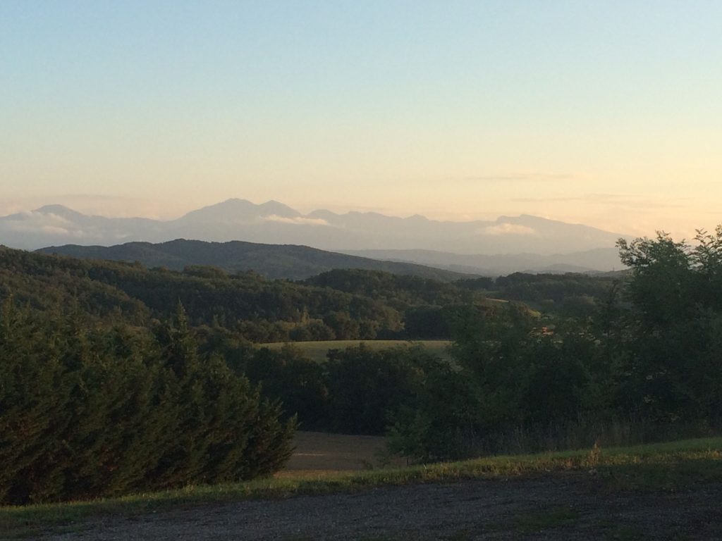 Der kurze Anstieg zum Hotel war noch einmal bissig, die Aussicht auf die Pyrenäenberge dafür aber grandios. Das junge englische Hotelierspaar und ihre kleinen Kinder waren sehr nett und das Essen vorzüglich.