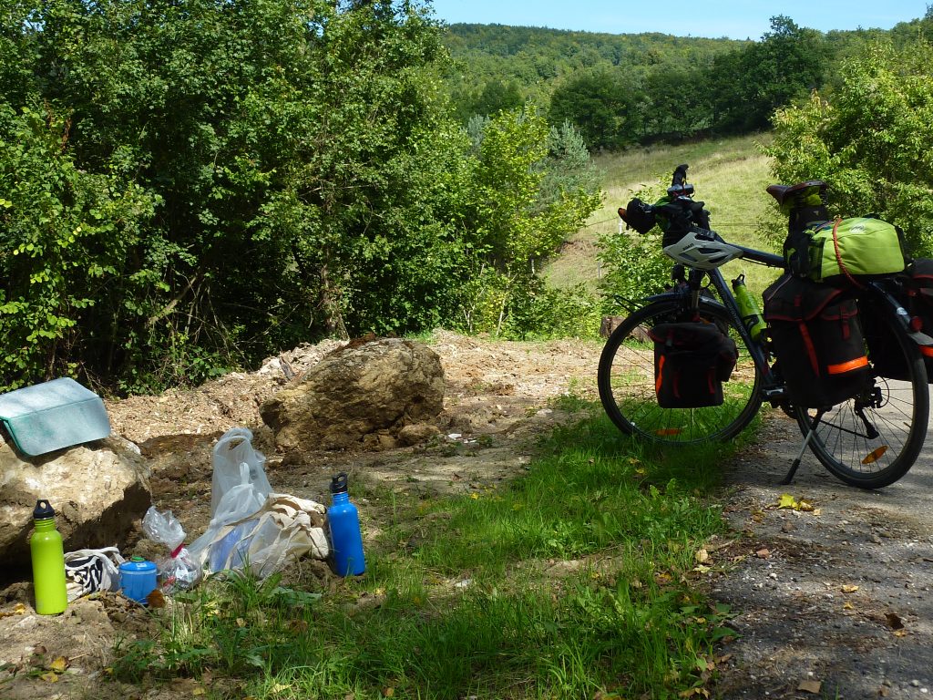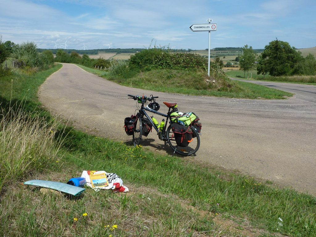 Ich bin sehr dankbar, dass ich keinen Unfall hatte und auch nicht krank geworden bin. Meine Ausrüstung, auf die ich viel Zeit in der Vorbereitung verwandt hatte, war wirklich gut. Ich hatte keinen einzigen Defekt am Rad, keinen Platten, keinen Speichenbruch. Außer dem schon vor der Tour geklauten Werkzeug gibt es nur noch ein Schneidebrettchen als Verlust zu beklagen. Es dürfte an der alten Römerstraße vor Neufchateau bei den Baumstämmen am Wegrand liegen wo ich Mittagspause gemacht hatte.