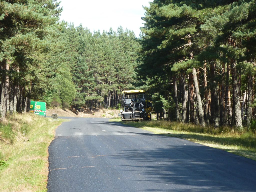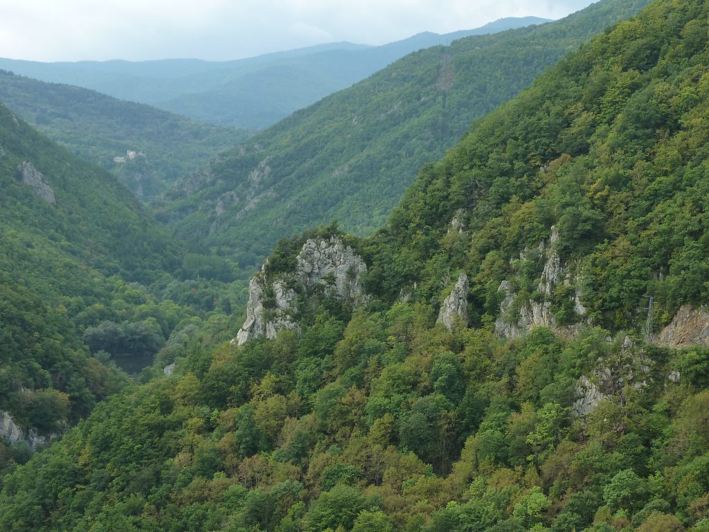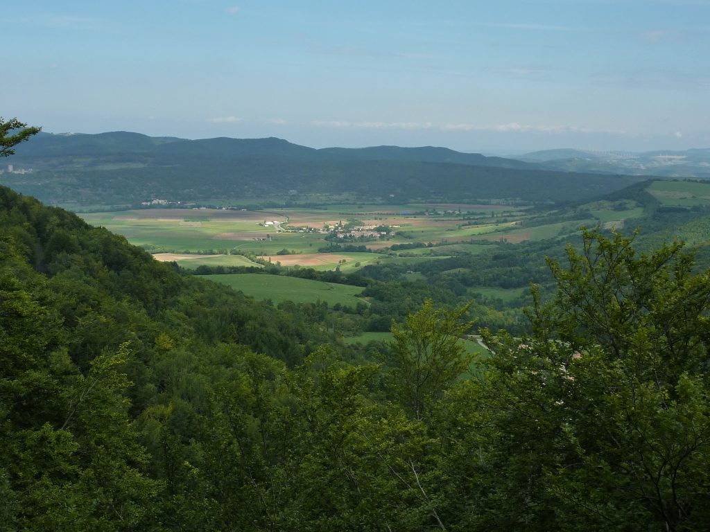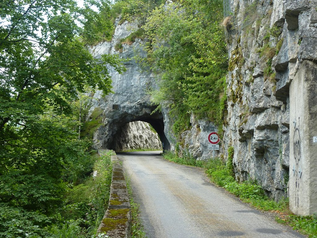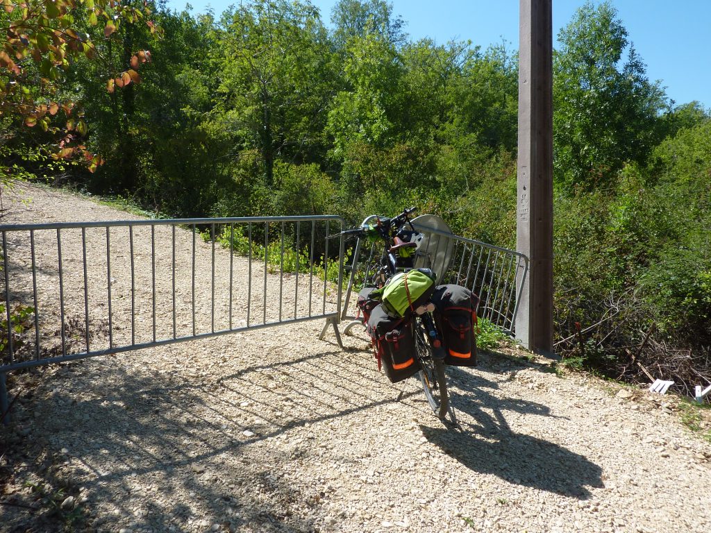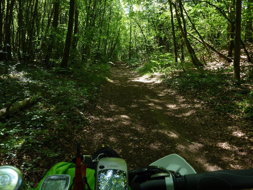 Ich bin am Rand der Hochebene von Puivert im Wald ganz gemütlich aufgestiegen, es fuhr sich richtig leicht. Auf ca. 800m ging es eng am Fels entlang, es tat sich kurz ein wunderbarer Blick über die Ebene auf, dann ging es durch einen Tunnel aus dem Tal hinaus und weiter aufwärts Richtung Sault-Hochebene.