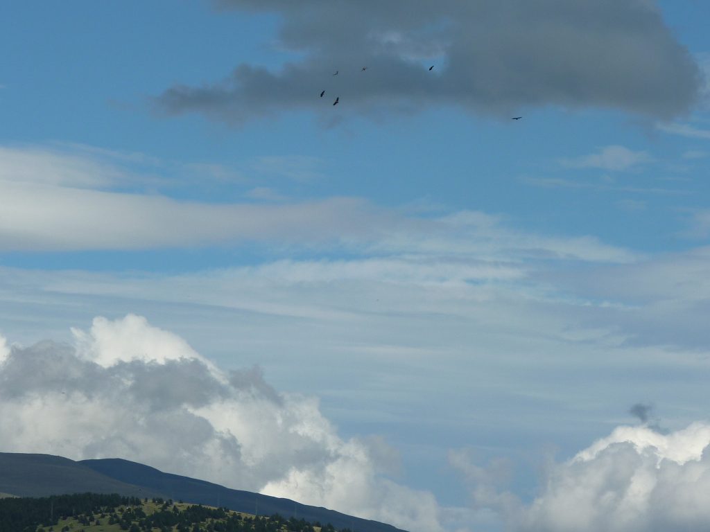 Ich bin kurz vor dem Toses-Pass auf die BV4031 in Richtung Coll de la Creueta abgebogen und wurde dafür gleich mit dem Bild einer Gruppe von mehr als zehn über mir kreisenden Geiern belohnt. Manche waren sehr hoch, einige flogen über meinem Kopf recht nahe und sehr groß.