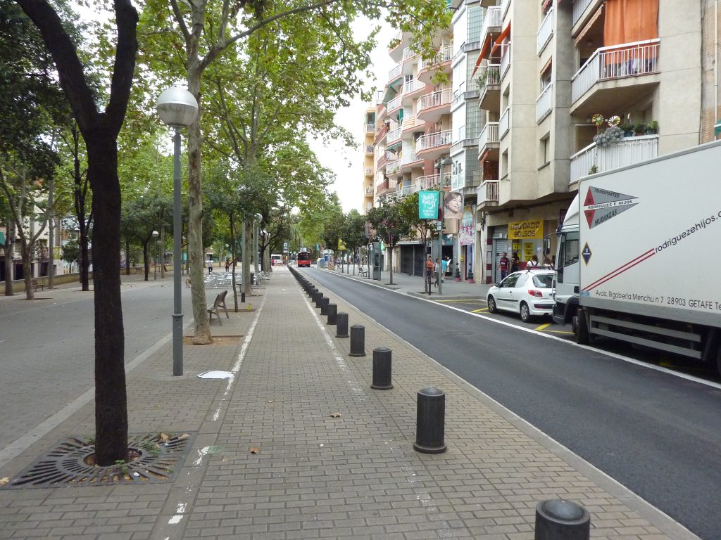 Von der Sagrada ging es zurück zur Diagonal. Sie hat in der Mitte einen sehr breiten Flanierstreifen auf dem auch Radwege verlaufen. Allerdings gilt auch hier: Die Leute gehen quer und nach Gehör. Also muss man sehr vorsichtig sein.