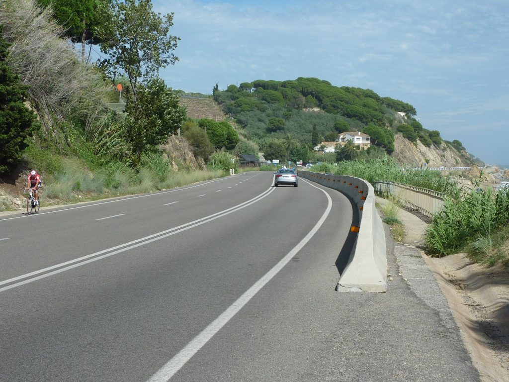 Ab Matarò bin ich der großen Küstenstraße gefolgt. Der starke Südwind war nun nicht mehr gegen, sondern für mich. Viele Rennradfahrer waren ebenfalls auf dem Randstreifen der Straße unterwegs und die allermeisten Auto- und LKW-Fahrer überholten sehr rücksichtsvoll.