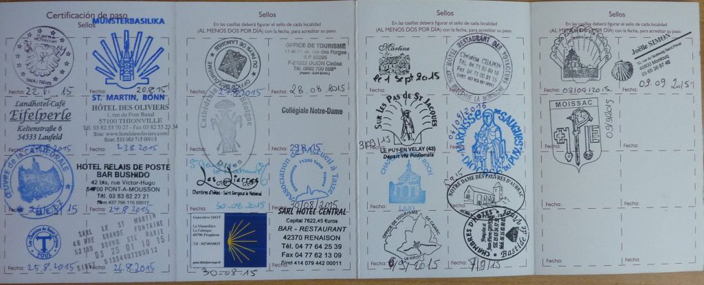 Die Reise entlang eines alten Pilgerwegs war etwas Besonderes für mich. Da ich mich selbst als religösen Menschen bezeichnen würde, habe ich aus den Besuchen der vielen Pilgerkirchen und den Begegnungen mit anderen Pilgern viel an Ermutigung gezogen. Einige Seiten meines Pilgerausweises habe ich auf der Reise mit teils sehr schönen Stempeln füllen können.