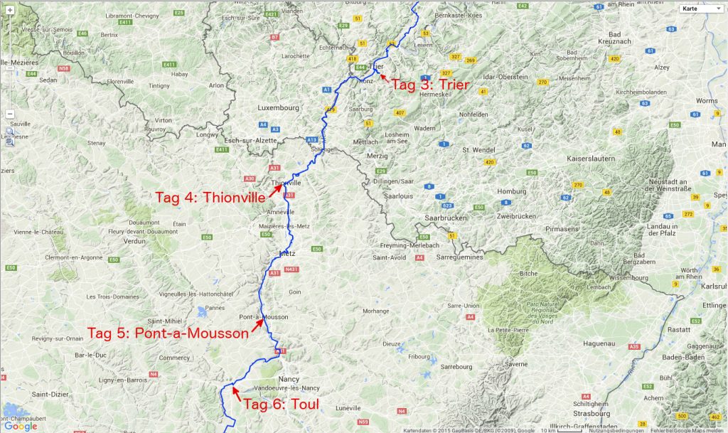 Tag 4 – Trier – Thionville – 85 km, 220 Hm