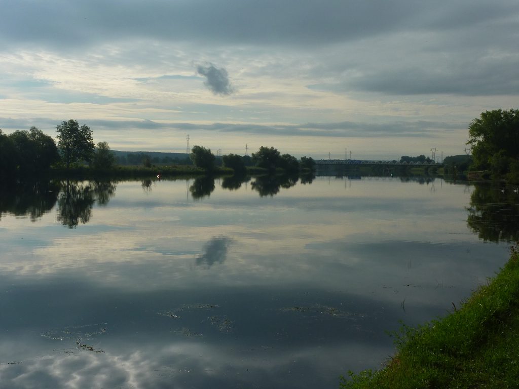 Ich hätte bis Thionville auf der linken Moselseite bleiben sollen. Aber kurz vor der Stadt, die dunklen Wolken ballten sich vor mir, bin ich über eine Brücke, um dem Hauptweg zu folgen. Der endete dann vor der Mündung eines Kanals, über den die Brücke fehlte. Die im nahen Bootshaus feiernden Franzosen gaben mir den Hinweis, den Umleitungsschildern zu folgen. Na, die hätte ich vorher mit etwas mehr Umsicht selber sehen können, groß genug waren sie.