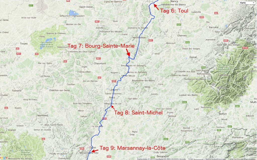 Tag 9 – Saint-Michel – Marsannay-la-Cote – 80 km, 645 Hm
