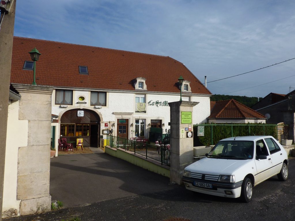 Als ich am Hotel ankam, schlenderte gerade ein Mann, etwas älter als ich, auch darauf zu. Er sah aus wie ein Pilger, also hab ich auf Deutsch gegrüßt. Wir haben zusammen im Hotel zu Abend gegessen und viel erzählt. Er war aus der Nähe von Trier und hatte erst vor zwei Wochen entschieden, dass er losläuft und wollte nun bis ans Ende der Welt, weil ihm seine Wanderung nach Trier so gut gefallen hatte. Er hatte sich Zelt und Pilgerführer besorgt und sich von seiner Frau verabschiedet und würde bis in den November laufen müssen. Er hatte 16 kg Gepäck inklusive Zelt dabei, wollte aber hinter Langres abspecken, vor allem das Zelt wollte er zurückschicken. Der Abschied war sehr herzlich.
