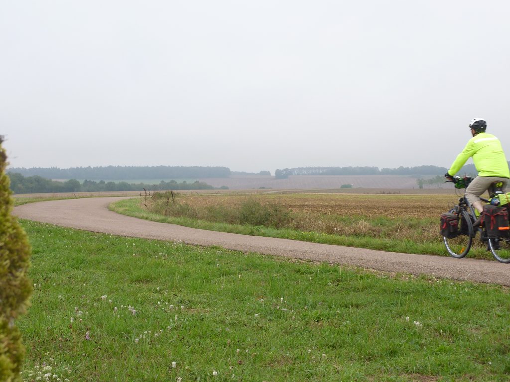 Nach Pompierre ging es mehrere Kilometer auf geteerter Römertrasse bergauf, natürlich mit heftigem Gegenwind.