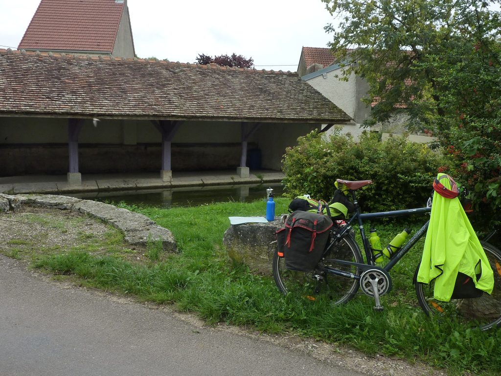 In Échevannes habe ich an der kleinen Brücke am Waschhaus Mittag gemacht. Die Waschsteine waren direkt am Bach.