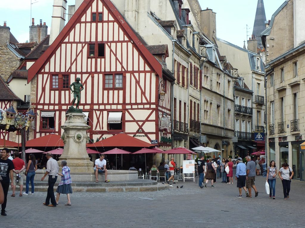 Erst sieht man die Ausläufer von Dijon auf der Höhe liegen, dann, von Fontaine-lès-Dijon aus hat man einen weiten Blick über die Stadt.