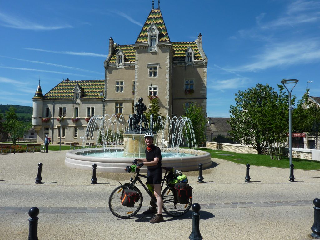 Es war ein sehr warmer Tag angekündigt, daher war ich schon um halb neun auf dem Rad. Die Straßen waren sehr gut geteert, es gab keinen Wind und keine starken Steigungen, die mich bremsten. Es ging durch alle Weinorte am Hang zwischen Dijon und Beaune.