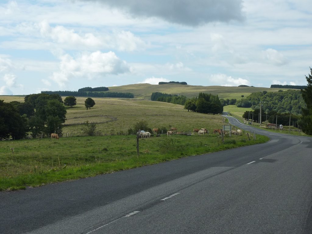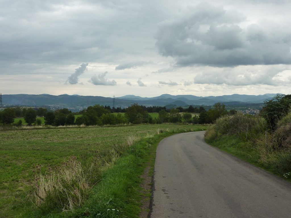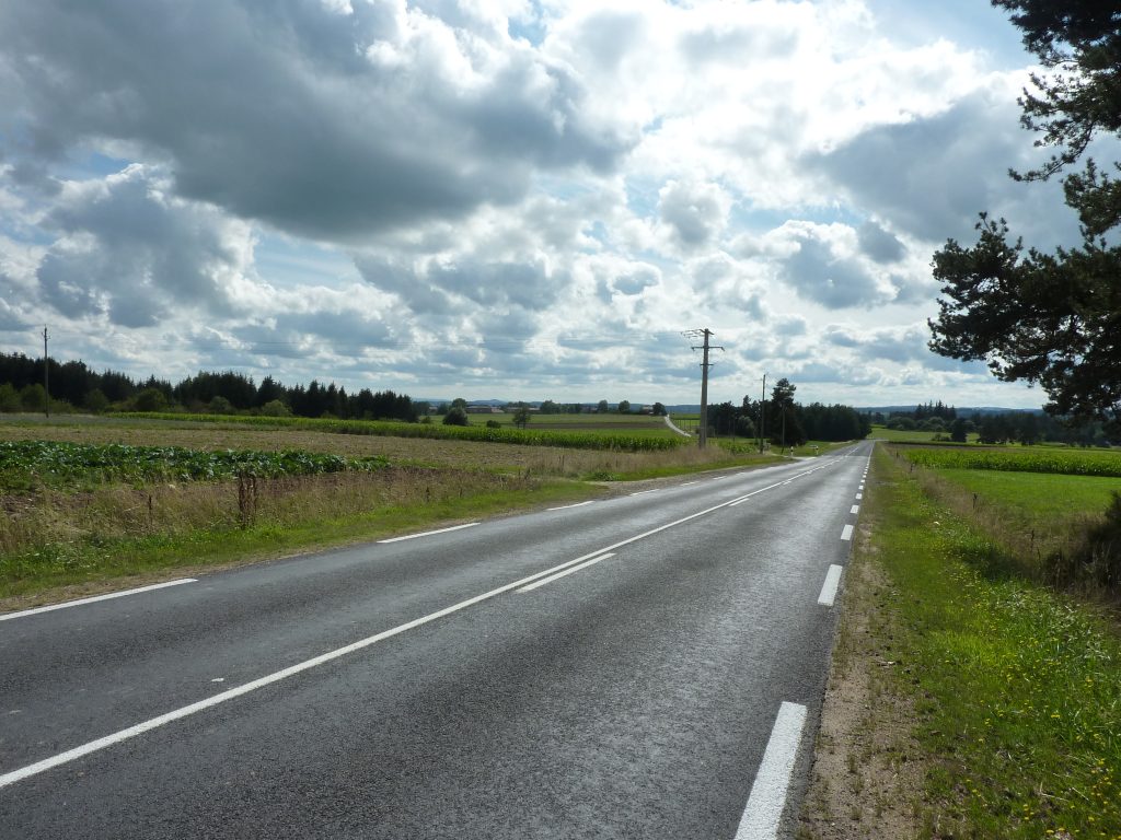 Die kleine Department-Straße war sehr gut zu fahren, die Autos und LKWs überholten mich sehr achtsam. Ich sang und pfiff vor mich hin. Heute gab es kein Pilgergebet in einer Kirche, die Landschaft war meine Kirche.