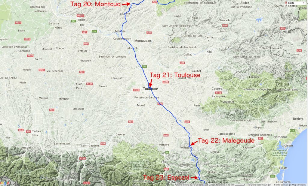 Tag 22 – Toulouse – Malegoude – 80 km, 435 Hm